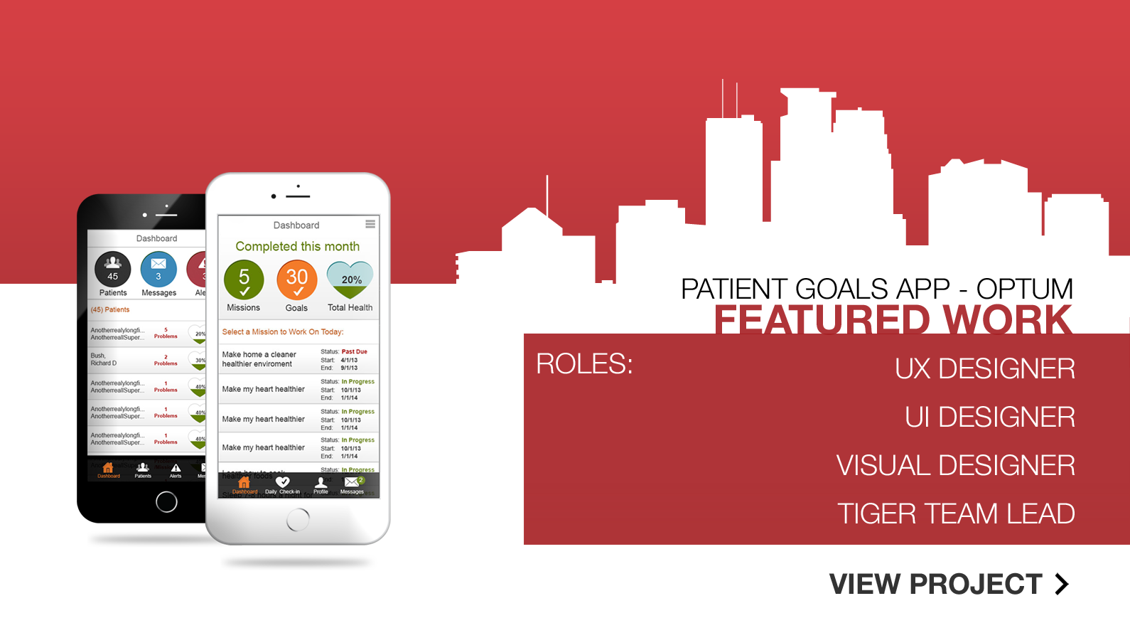 My strategic role on the Tiger team enabled me to flex my UX muscle in building on and enhancing the usability of Optum’s Optum One software platform. Since this was my first foray into the medical field I had to learn the basic terminology used and the core features of this software crafted for the medical care industry.