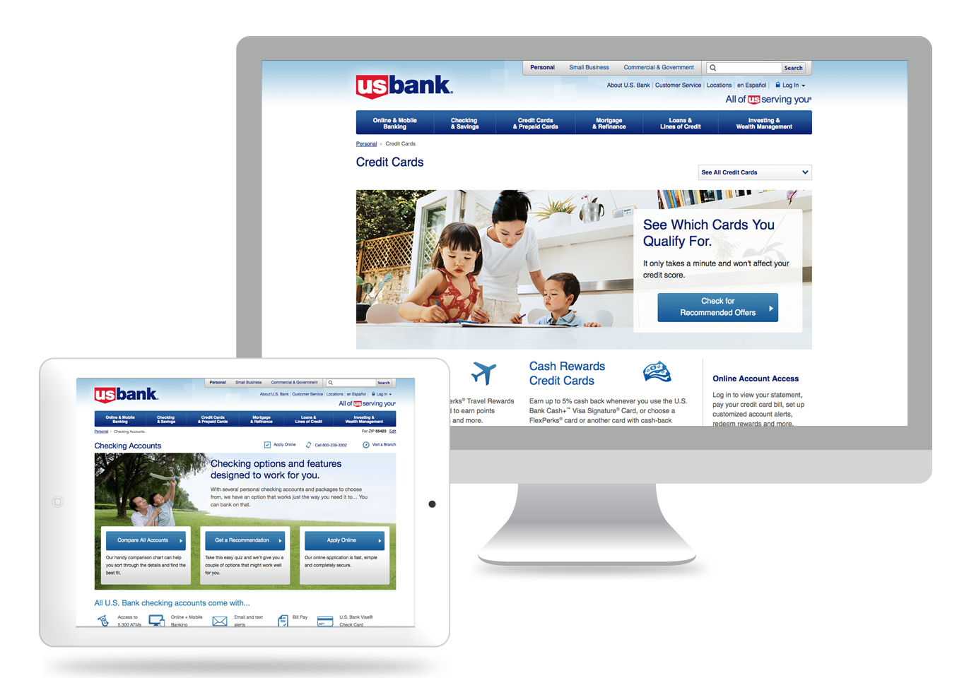 At Us Bank one of the leading banks in the Midwest, I was granted the privilege of redesigning the checking and credit cards sections of the website. Of course a project this large required a number of talented individuals including Writers, UX designers and SEO experts.